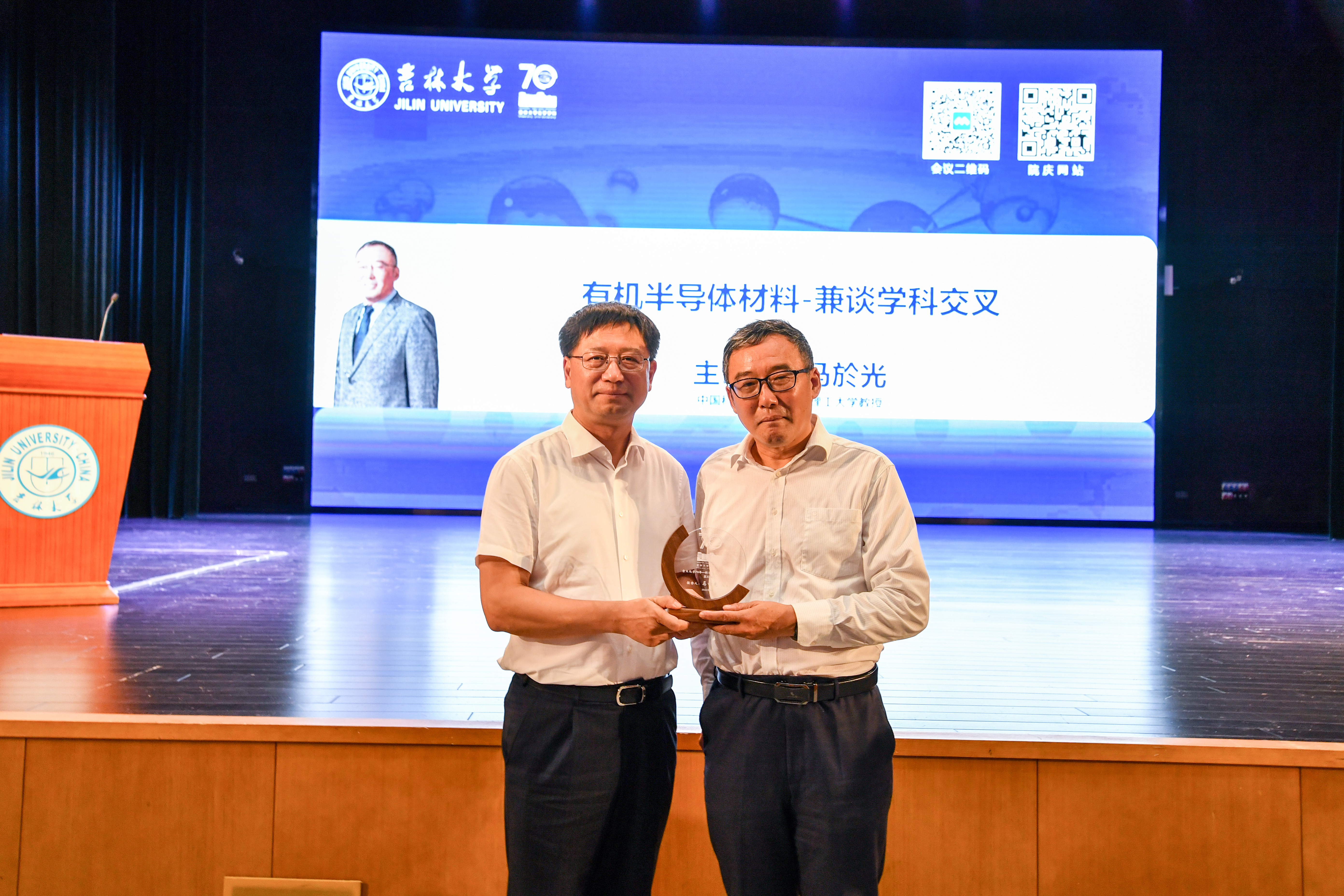 校长张希出席并向马於光院士颁发“吉大化学七十年——科学与未来系列讲座”纪念牌。