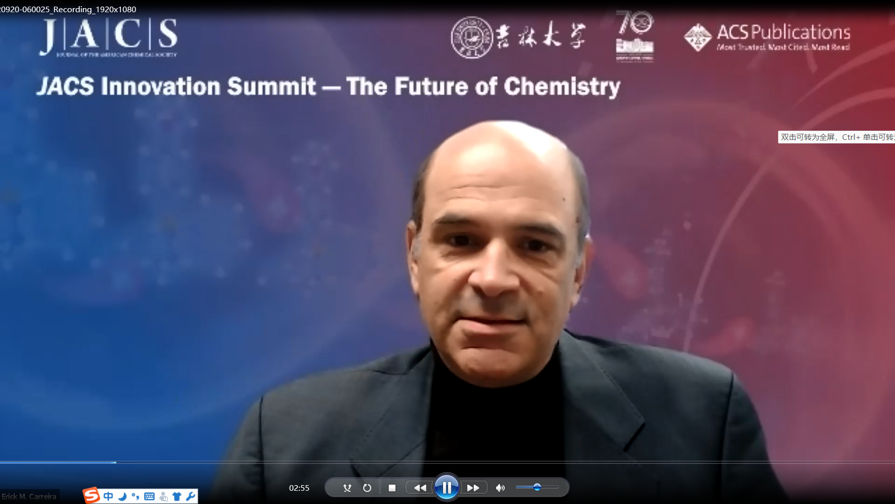 Erick Carreira 在致辞中祝贺吉大化学学科创建70周年,他高度赞扬了吉大ACG港湾